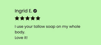 This gentle face and body soap is made with Ontario grass fed beef tallow. It is gentle enough to use on sensitive skin and it cleanses while moisturizing.
